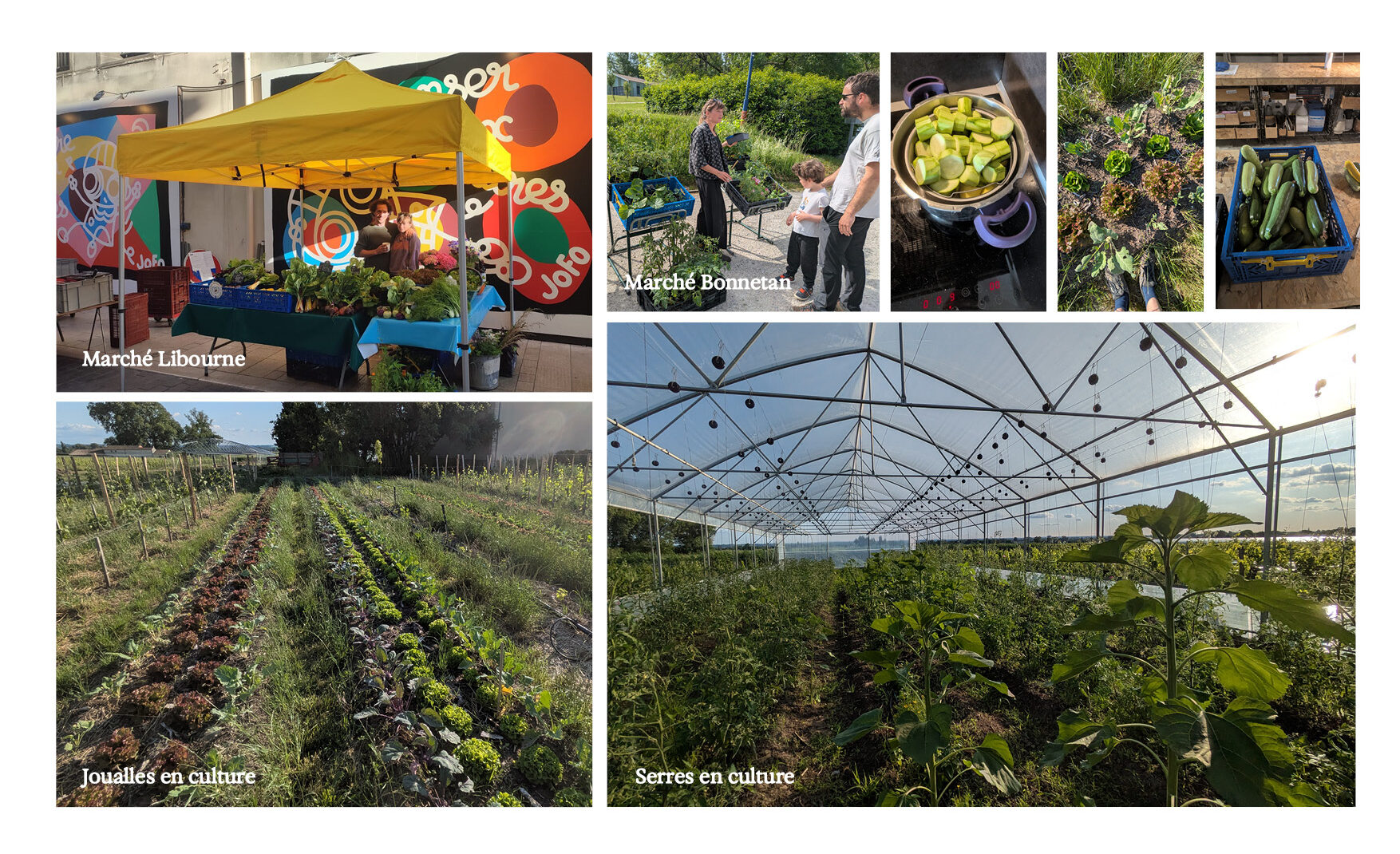 Les produits du maraîchage sont en vente dans la boutique du domaine, à destination des habitants du secteur comme des visiteurs. Nous sommes présents au marché de Libourne tous les vendredis matin et nos fleurs comestibles, aromates et légumes anciens sont cuisinés chez plusieurs restaurateurs locaux.