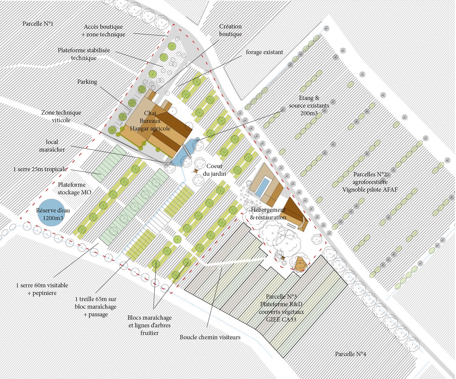 – Début 2025 : mise en place des serres, de la treille et du système d’irrigation