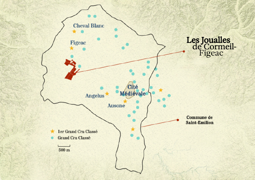 Situé sur la commune de Saint-Émilion, notre domaine se trouve au cœur de l’un des deux grands secteurs viticoles historiques de l’appellation. Ce secteur, à l’ouest de la cité, faisait autrefois partie du vaste domaine de Figeac, morcelé au fil du temps en une quinzaine de propriétés. Parmi elles, Cheval Blanc est aujourd’hui la plus emblématique, aux côtés du Château Figeac lui-même, tous deux dignes représentants de ce terroir d’exception.